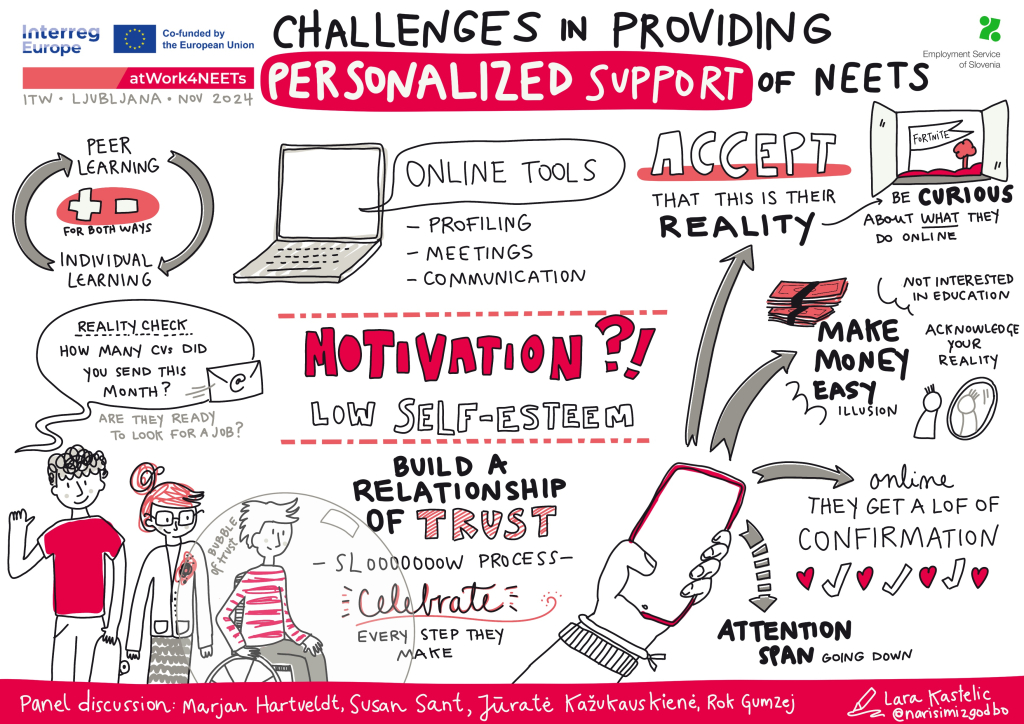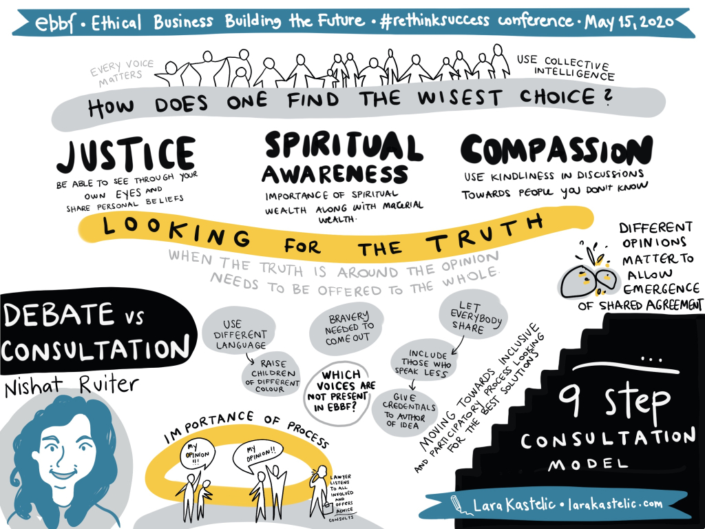 Poleg tega, da je talentirana ilustratorka s sposobnostjo zgoščenega in nazornega povzemanja, je Lara tudi tehnično podkovana, kar ji omogoča, da na dogodku ustvarja sproti in njene ilustracije podpirajo vodenje dogodka. So v pomoč pri povzemanju vsebin za udeležence in jim dajejo občutek, da so nekaj celovitega doživeli in soustvarili. Po dogodku so ilustracije odlično orodje za komuniciranje obravnavanih vsebin.